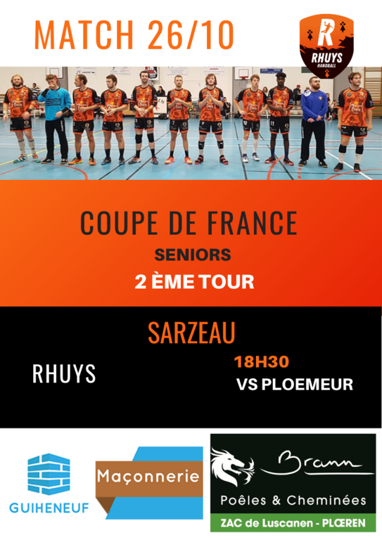 Samedi, à 18h30, les Séniors rencontrent Ploemeur pour le deuxième tour de la Coupe de France.