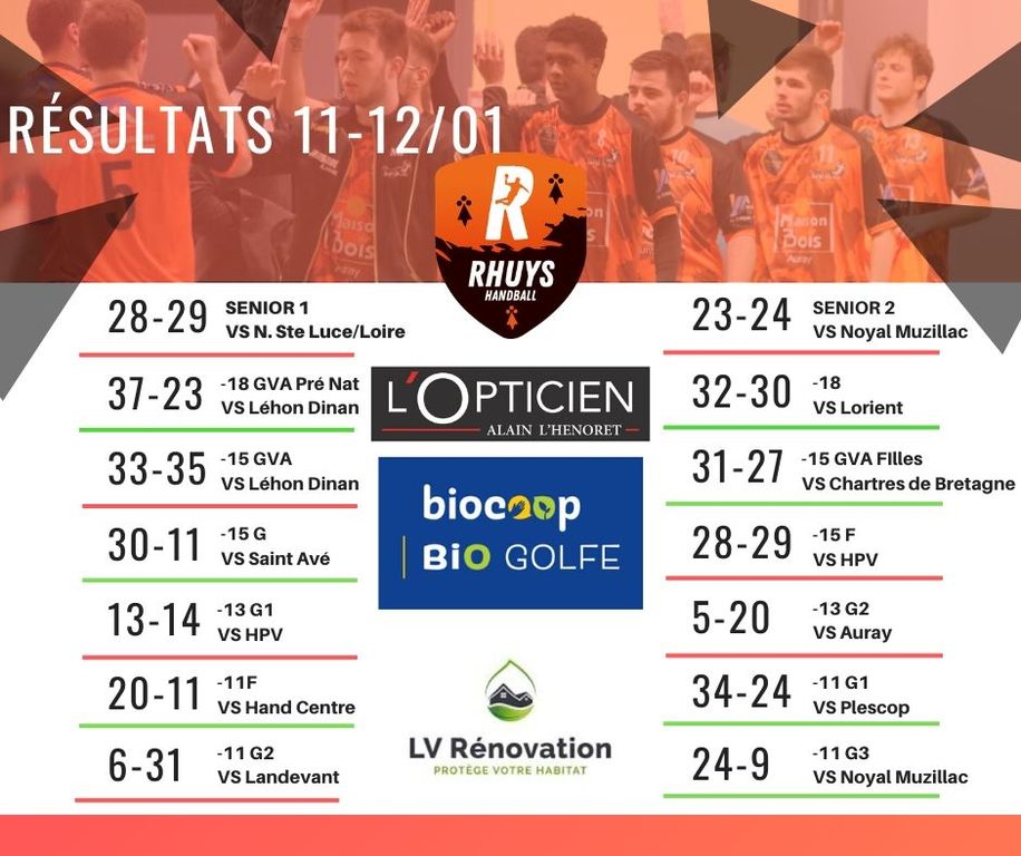 Tous les résultats. Autant de rouge que de vert. Pas mal, d'autant que vous notez que certaines défaites sont sur le fil. Bravo à tous!