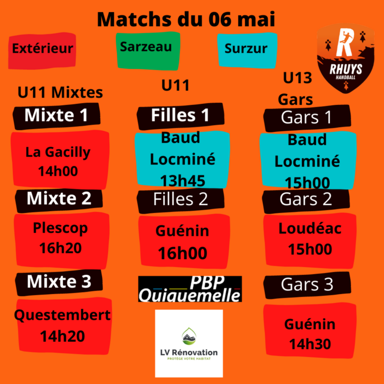 Nos partenaires PBP Quiquemelle et LV Rénovation vous présentent les matchs