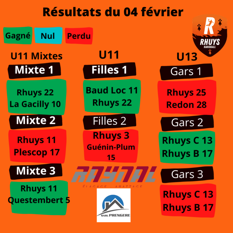 Les résultats de nos Rhuysseaux sont présentés par Raynal Elagage et par Prengère Couverture